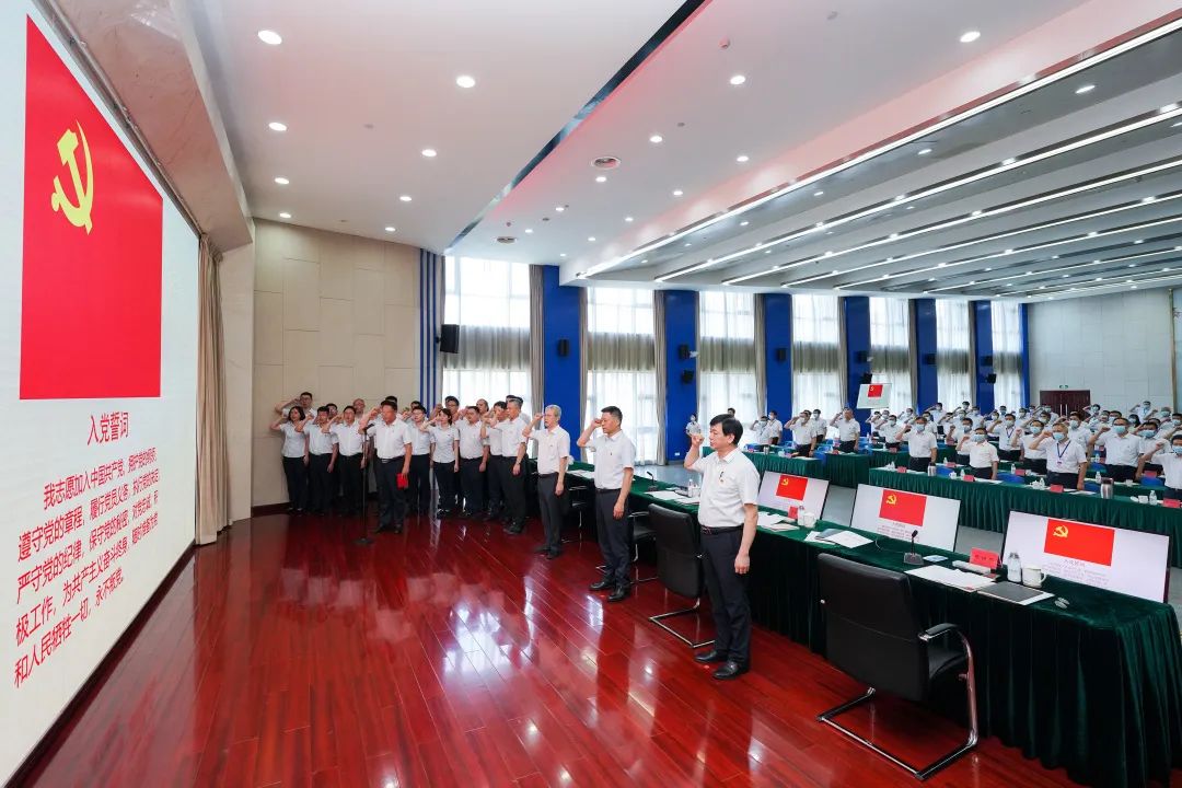 面向党旗,集团公司新党员在各个会场进行了入党宣誓。全体党员重温了入党誓词。
