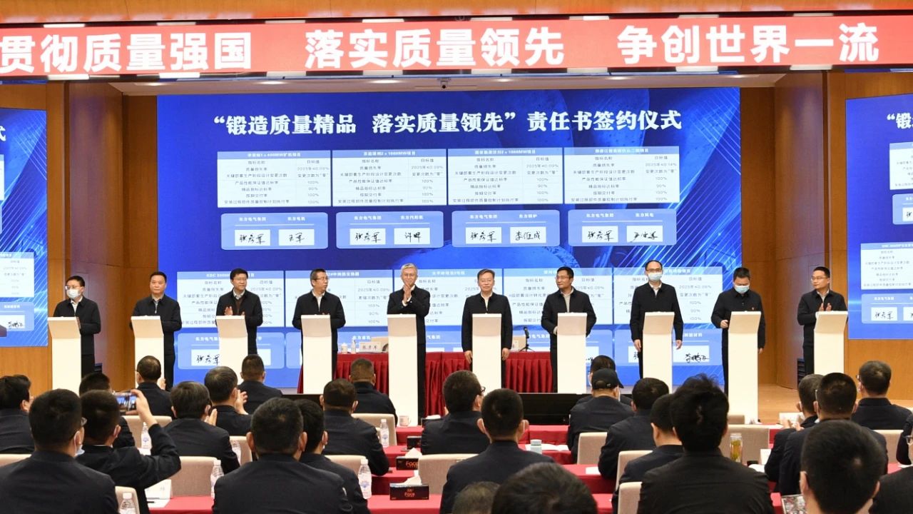 “贯彻质量强国,落实质量领先,争创世界一流”专题质量活动在东方电机举行。特别是在3·15这个特殊的日子里,组织全集团生产制造类企业召开水电机组精品质量经验反馈专题会,认真学习贯彻习近平总书记关于质量强国的重要论述精神,全面落实习近平总书记对白鹤滩水电站首批机组投产发电的贺信精神,进一步推动集团公司“质量领先”战略落实落地,厚植“质量问题不该有、质量损失要归零”的质量文化,踔厉奋发加快建设世界一流企业。