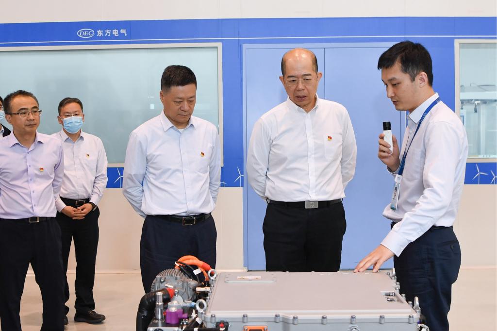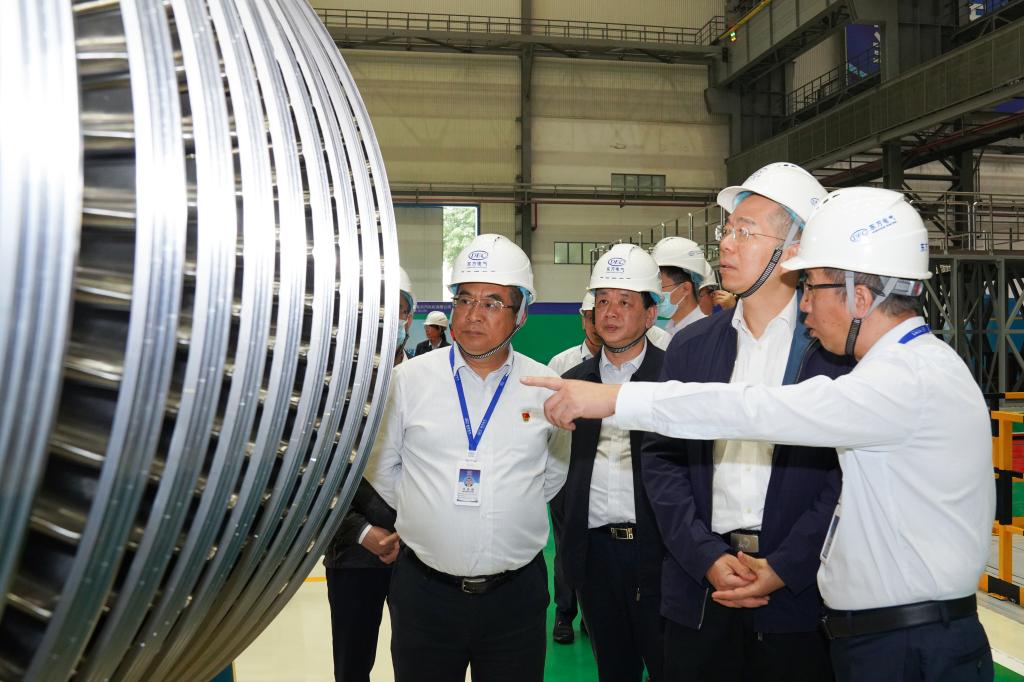 德阳生产制造基地,到所属东方汽轮机、东方电机的全国重点实验室、叶片加工黑灯产线、汽轮机数字化总装车间、大型清洁能源装备重型制造数字化车间、东电印迹、劳模大师创新工作室、党员活动室等基层一线调研。在中国“争气机”整机试验台前,谭作钧高度肯定14年来F级50兆瓦重型燃机的自主创新成果,勉励青年科研工作者传承好“东汽精神”,在勇攀科技的高峰插上C7