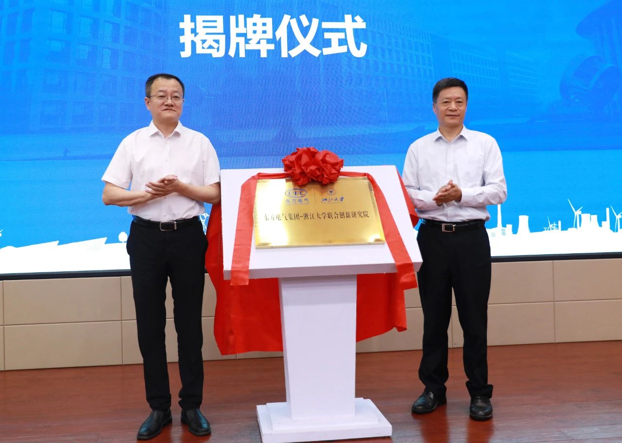 党组书记、董事长俞培根,浙江大学校长、党委副书记杜江峰共同为联合创新研究院揭牌。