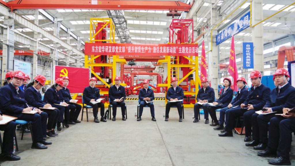 党组书记、董事长俞培根参加联系基层党支部——东方宏华研发部党支部“提升新质生产力,激活发展新动能”主题党日活动。研发部党支部党员代表、青年代表和党外人士代表参加活动。活动采取沉浸式与互动式相结合的方式,在东方宏华零部件车间现场开展。