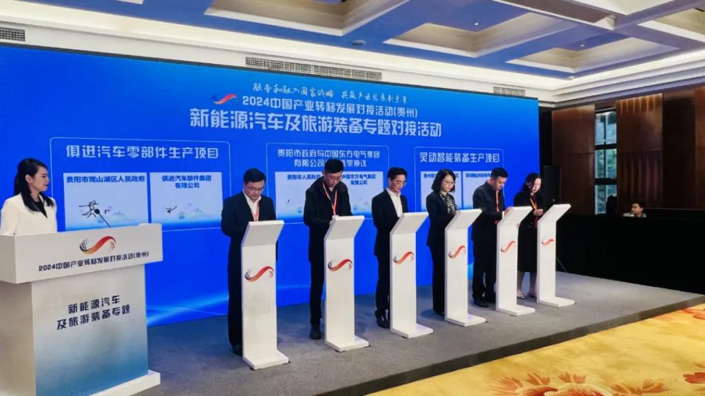 2024中国产业转移发展对接活动(贵州)以“服务和融入国家战略 共赢产业发展新未来”为主题,包括1场综合活动和4场专题活动,围绕资源精深加工及综合利用、先进装备制造、大数据电子信息、特色轻工等贵州特色优势产业,开展地市推介、政企对接、实地考察、专家解读、项目签约等。在新能源汽车及旅游装备专题对接活动中,C7娱乐