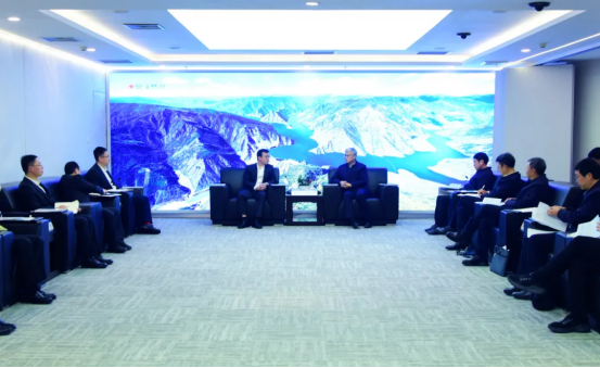 总经理、党组副书记张彦军率队访问雅砻江流域水电开发有限公司,与雅砻江公司党委书记、董事长孙文良就科研创新、水风光氢储等产业合作进行深入交流。集团公司党组成员、副总经理李建华,雅砻江公司总经理、党委副书记张鹏参加会谈。