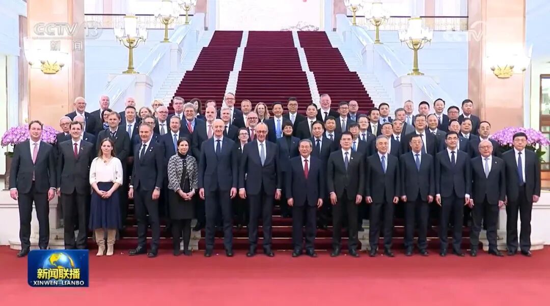 李强指出,目前中德经济都呈现回升向好势头。“十五五”时期,两国经贸合作将迎来更加广阔的空间。中德经济、产业优势互补的基本格局没有变,合作面远大于竞争面,完全可以通过塑造良性的竞合关系,更好地携手发展。双方可以重点聚焦三个方面协同发力,实现更高水平的互利共赢。一是做强传统合作的基本盘。两国企业可以继续深耕机械、装备、化工等领域合作,加快业务本土化,不断提升韧性和效率。二是把握未来发展的新机遇。支持两国企业和科研机构推进创新资源双向流动,深入开展技术共研、平台共建、成果共享,还可以共同开拓第三方市场。三是营造投资兴业的好环境。中国将坚定不移扩大高水平对外开放,积极解决德国等外资企业合理诉求。希望德国政府提供开放、公正、非歧视的营商环境,让两国企业遵循市场原则开展合作与竞争。希望中德企业家既为推动两国经贸合作,也为增进双方沟通理解、促进双边关系稳定发挥重要作用。